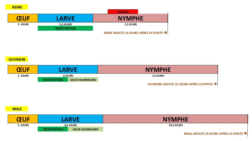 Toutes les larves sont nourries les trois premiers jours à la gelée royale.